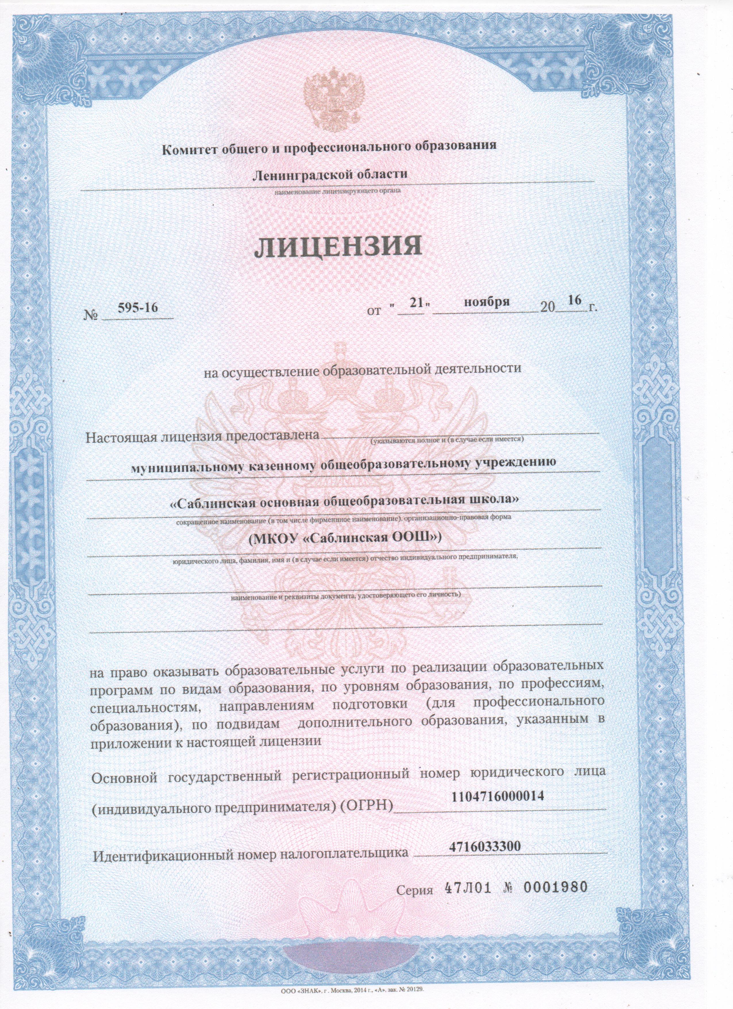 | Лицензия (сторона 1) Лицензия (сторона 2) Приложение к лицензии |